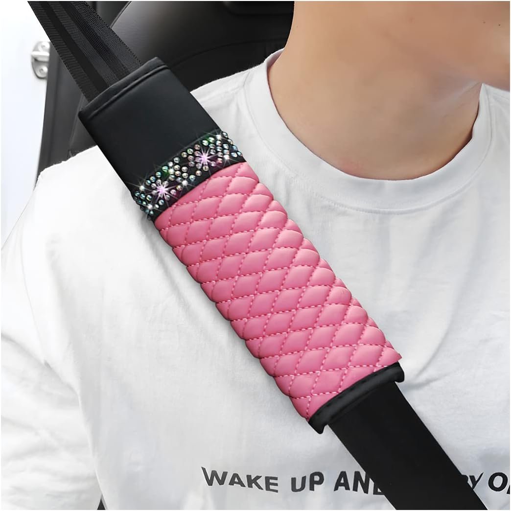 • 【Package Included】: Package includes 2 seat belt pads, shiny rhinestones plus leather texture, perfect for women; a variety of colors to choose from, you can buy for your own use, or as a holiday gift for female friends, adding style to the car.