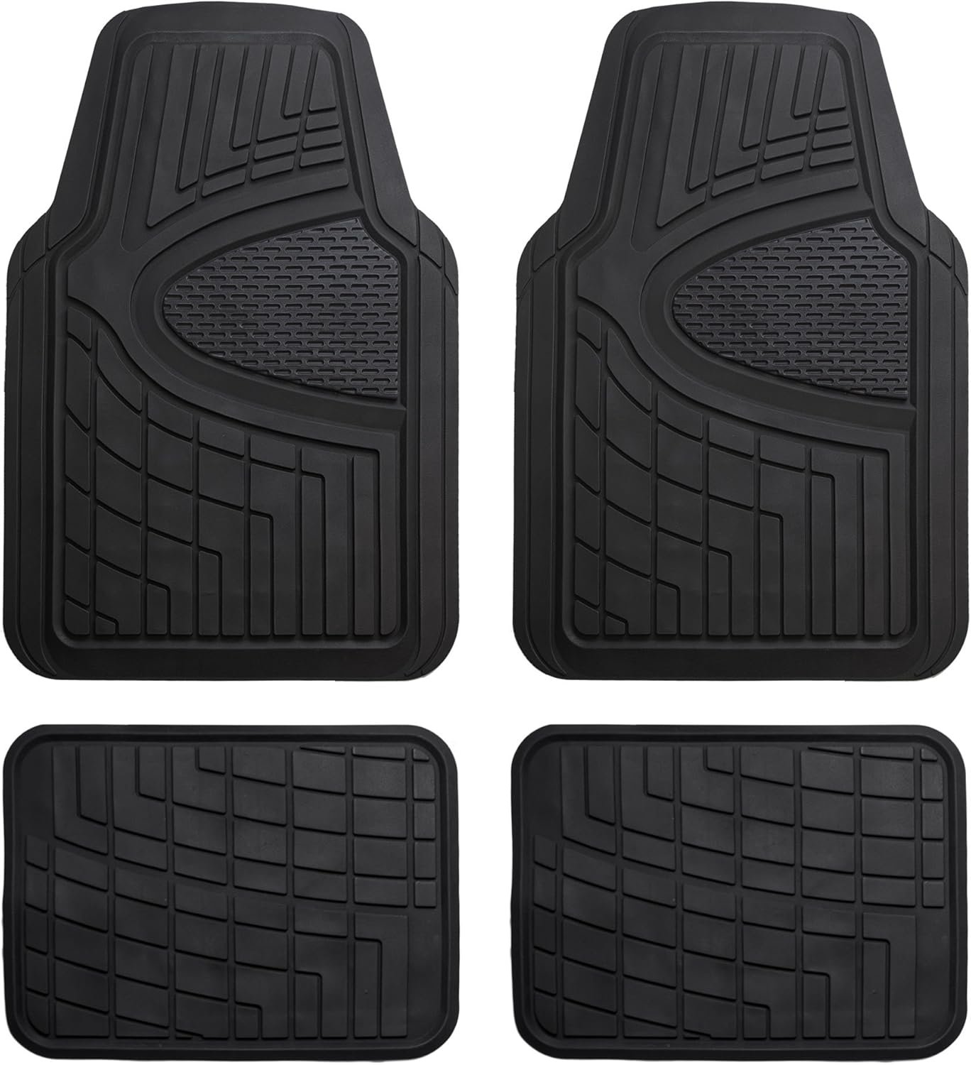 Automotive Floor Mats – Heavy-Duty Rubber Floor Mats for Cars, Universal Fit Full Set, & Trimmable Floor Mats for Most Sedan, , Truck, Black